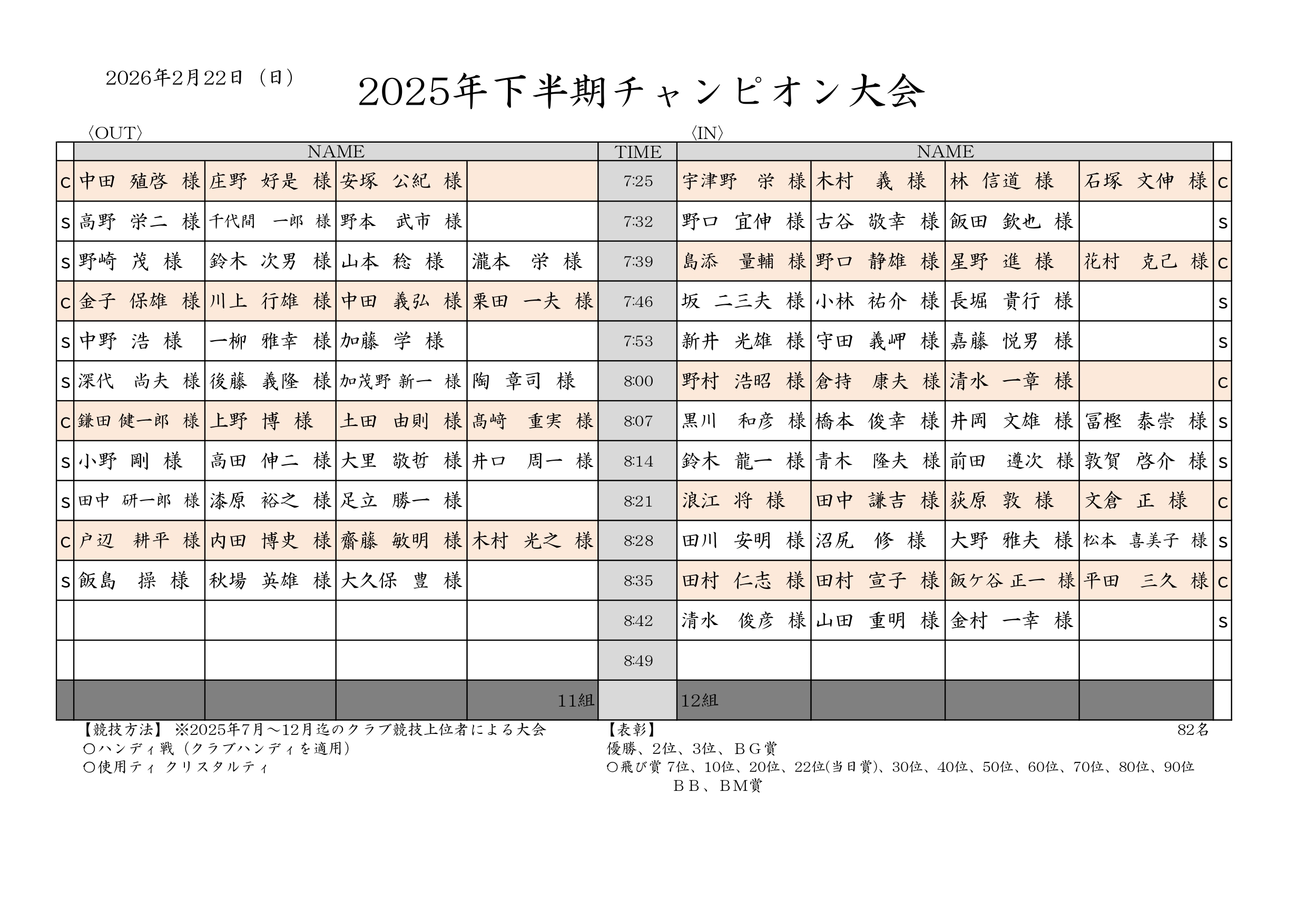 2026年2月22日(日)開催 チャンピオン大会組合せ表おしらせ